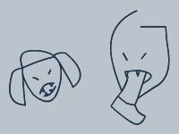 Ahí tirados, en el suelo de piedras (es un camino), se comienzan a transformar, al señor le salen dientes largos y, re-de-pente, muerde a la niña de seis años, la muerde y le quiere arrancar un pie. La niña de seis años también tiene dientes grandes, colmillos de perro, muerde a su vez al señor. Se muerden entre ellos.