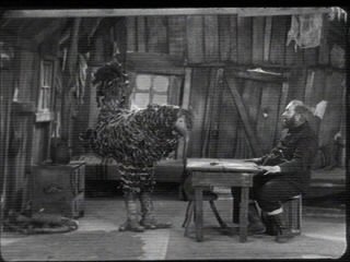 La parte más chinGona es cuando estan en aquella cabaña miserable en medio de la nada blanca fria y agobianTe arriba de la montaña helada y tienen mucha hamBreee y entonces su compadre el gordiTo empieza a verlo como un pollo, un pollo gigante que pasea enfrente de el y picoTea aqui y alla y entonCes muriendose de hamBreee el gordiTo planea matarlo y comerselo, ñam ñam.